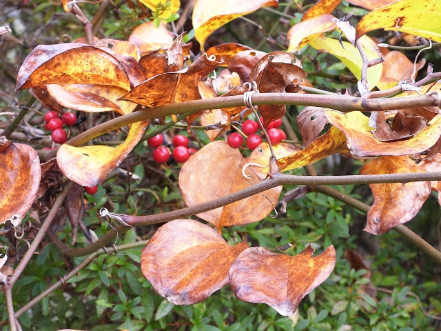 うっかりすると道端にも生えている可能性があるサルトリイバラはツルですが思ったより庶民的で身近な落葉木です。